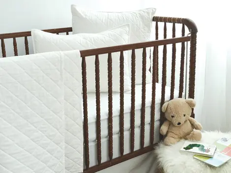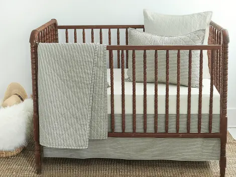 Our fitted crib sheets create a timeless crib scene with our signature white, natural or ticking stripe colors. Our crib sheets feature our signature yarn size and weave construction for a crisp cool percale sheet that is heaven to sleep on. Elastic runs around the entire fitted sheet to provide a secure hold on the mattress. Choose from either white, natural or ticking stripe fabric to compliment your baby's nursery.